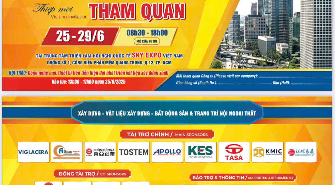 By Công Ty Cổ Phần Cốp Pha Tháng 6 19, 2025 Tin Tuc No Comments Thời gian | Date:25/6 – 29/6/2025 | 25th – 29th June, 2025 Địa điểm | Venue:Trung tâm Triển lãm SKY EXPO VIỆT NAM(Bên trong Công viên Phần mềm Quang Trung – Đường Tô Ký – Quận 12, TP. Hồ Chí Minh) Share: Previous Dự án Trảng Bom Đồng Nai Next Quý Khách Hàng Tới Tham Quan Gian Hàng Bê Tông Nhẹ Toàn Khối Tại Triển Lãm Vietbuild